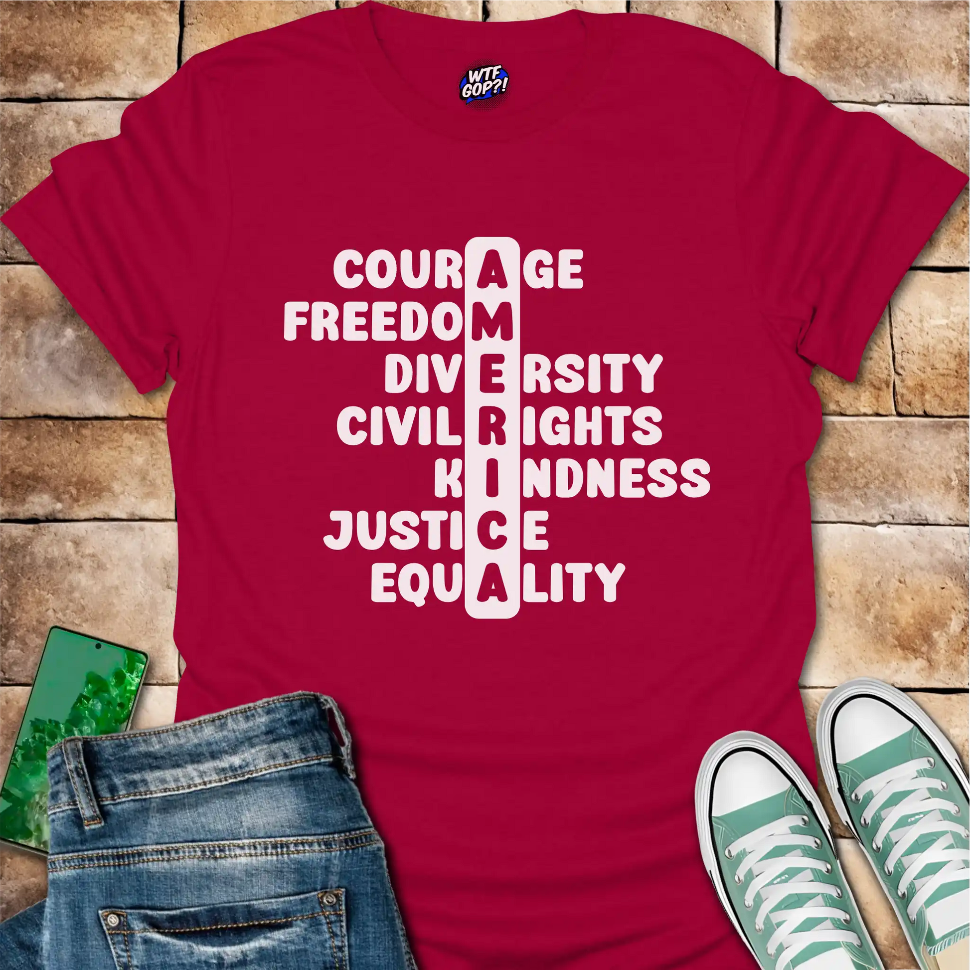 America Acronym T-Shirt - Courage, Freedom, Diversity Tee