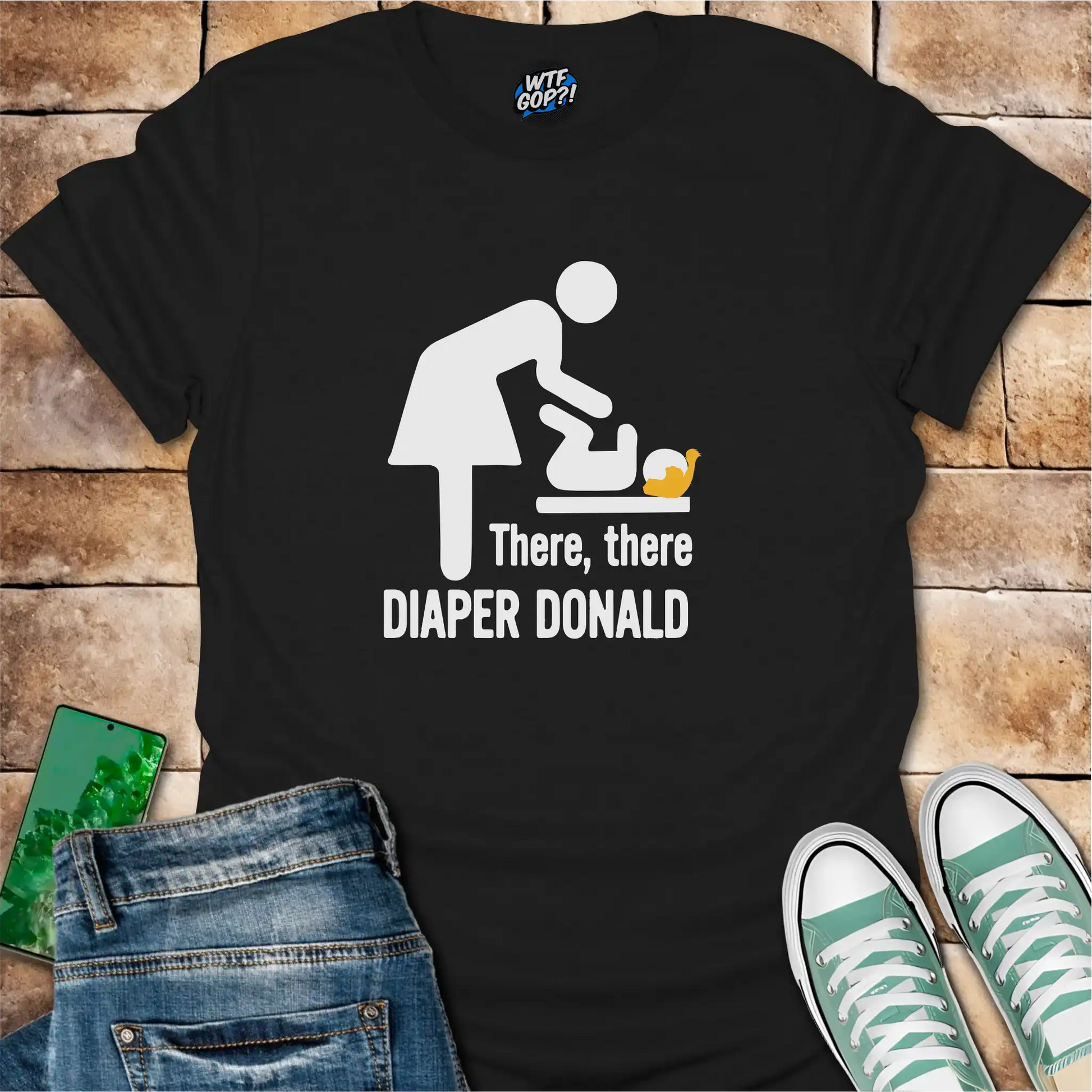 Make a humorous statement about presidential behavior with this Diaper Donald t-shirt. Perfect for political rallies, voting days, or anytime you want to remind people that sometimes our leaders act more like toddlers than adults. After all, nothing says "concerned citizen" quite like pointing out when elected officials need a political diaper change.
