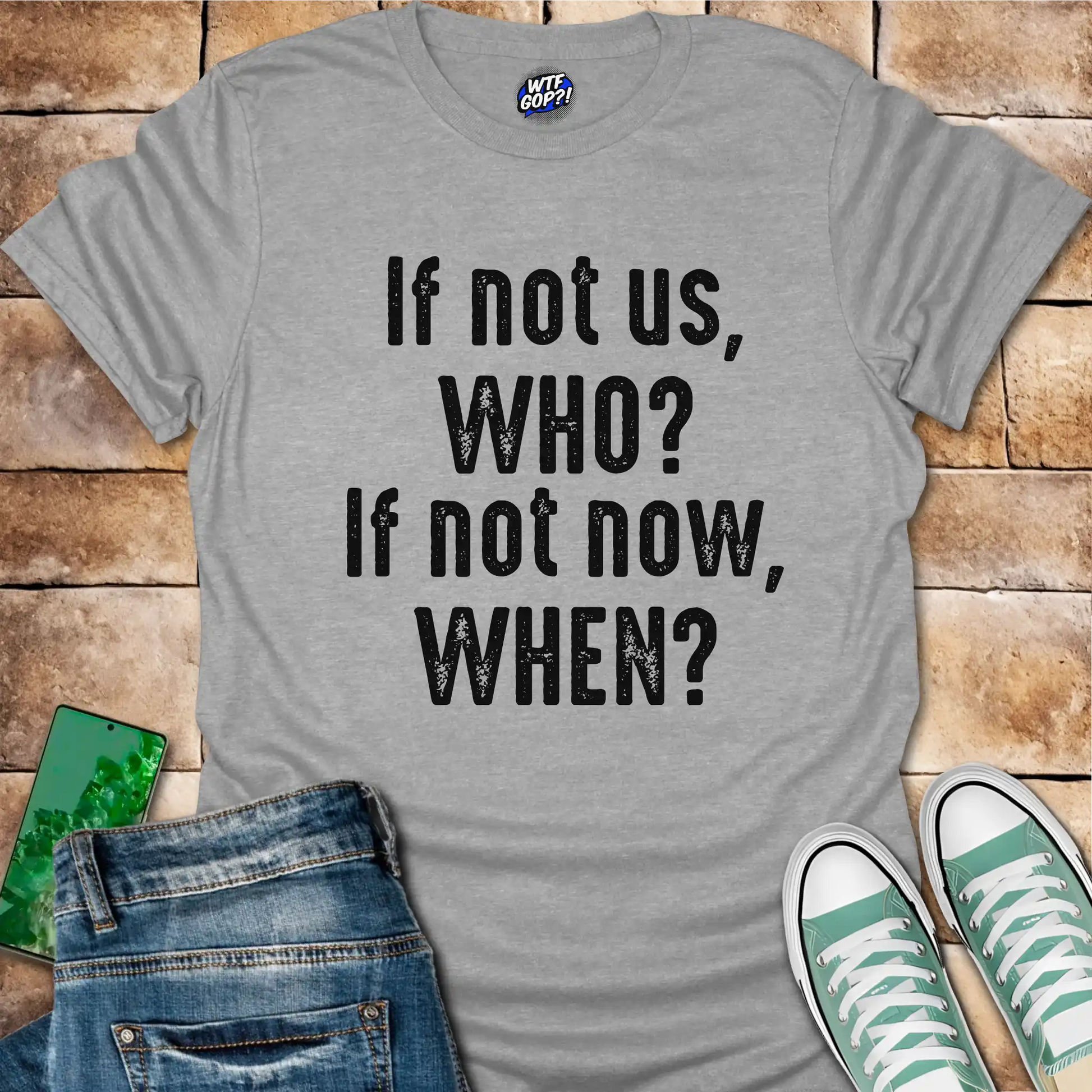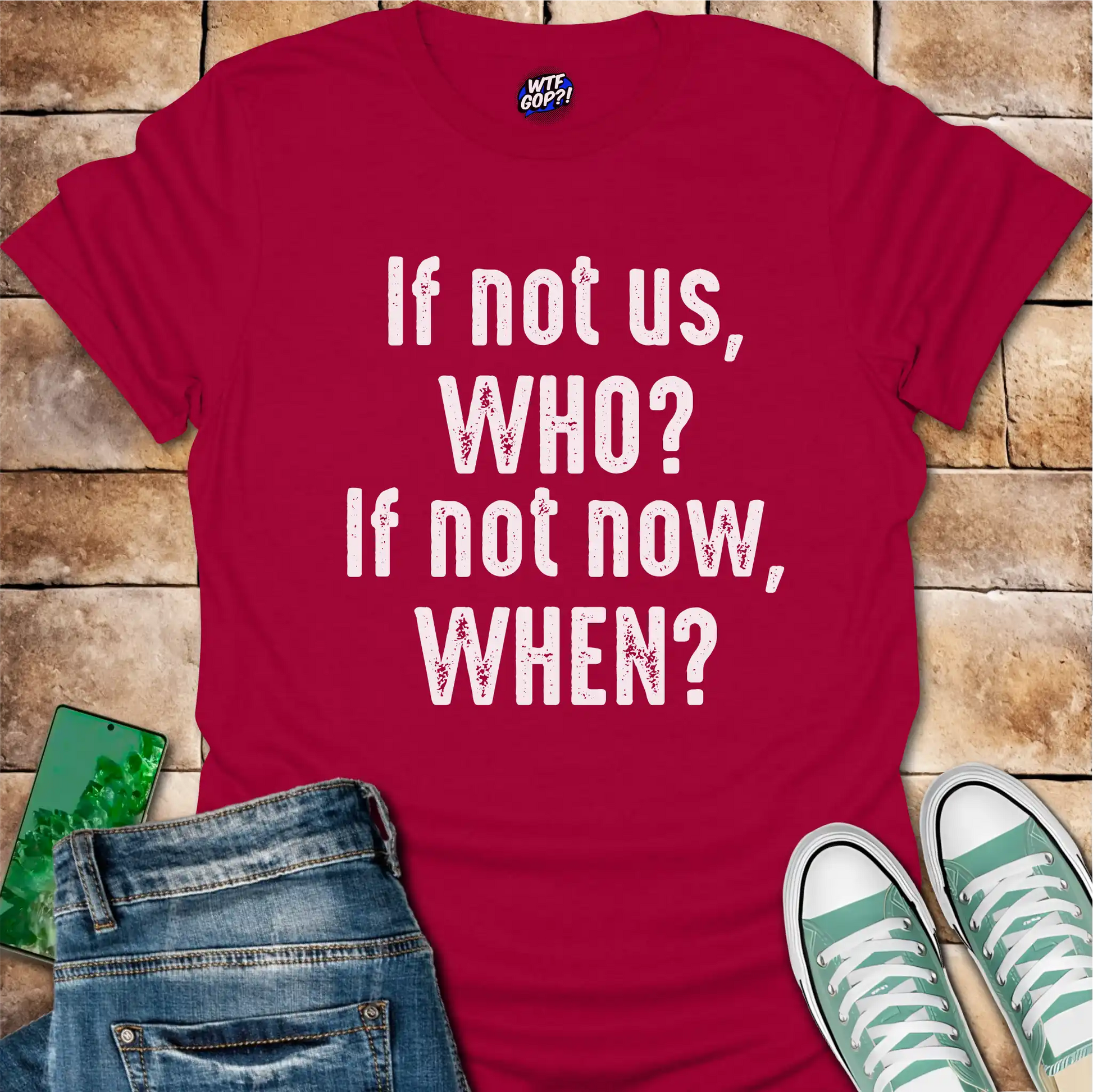 Feeling that fire in your belly to make a change? Our If Not Us Who? If Not Now When? T-Shirt is the wearable embodiment of that urgency! This isn't just an anti-Trump tee; it's a powerful reminder that change doesn't happen on its own. It requires us, and it requires us now. For anyone who's tired of waiting for someone else to fix things, this anti-republican tee is a bold statement of personal responsibility and a call to collective action.