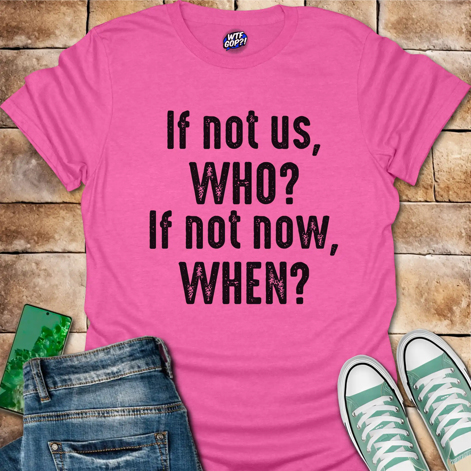 So go ahead, add this "If Not Us Who? If Not Now When?" t-shirt to your cart. Wear it proudly as a daily affirmation and an inspiration to others. It's the perfect gift for the passionate advocate in your life (and a great way to nudge those who might be sitting on the sidelines).