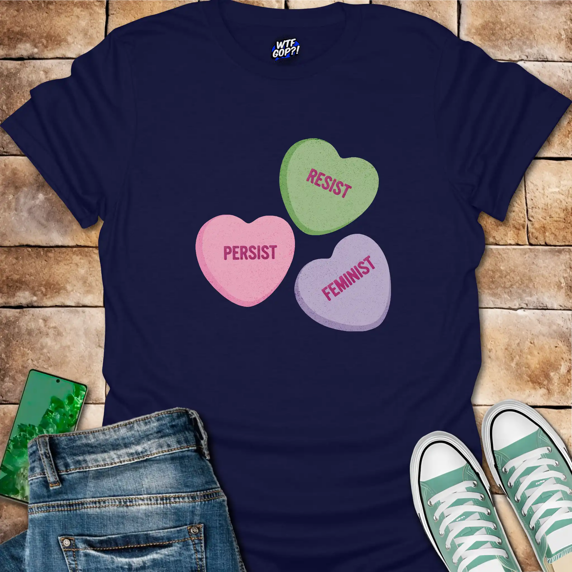 Resist Persist Feminist Candy Hearts T-Shirt: Sugar, Spice, and Defiance!